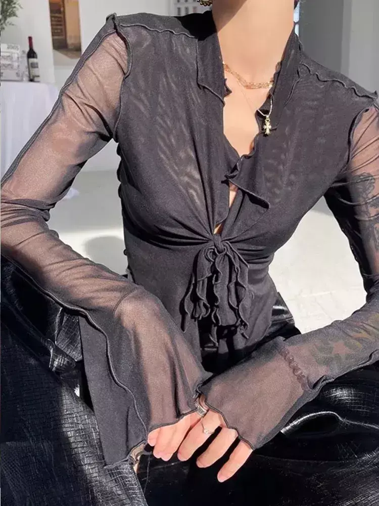 Os detalhes em renda nas mangas e decote adicionam um charme extra a essas blusas, tornando-as peças únicas no seu guarda-roupa. Os acabamentos delicados e a transparência estrategicamente posicionada criam um visual sofisticado e sensual, perfeito para ocasiões que exigem um toque especial. Deixe-se envolver pela elegância e feminilidade das Blusas Dozw.